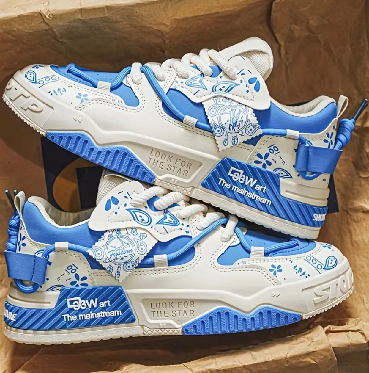 MAINALUN Men'S Low-Top Sneakers - All-Season Lace-Up Shoes with Cushioned PVC Sole, / Color Options - Lightweight Sneakers for Gym, Hiking, Travel - Comfortable Casual & Athletic Footwear, Geometric Pattern, Breathable Fabric, Versatile Footwear
