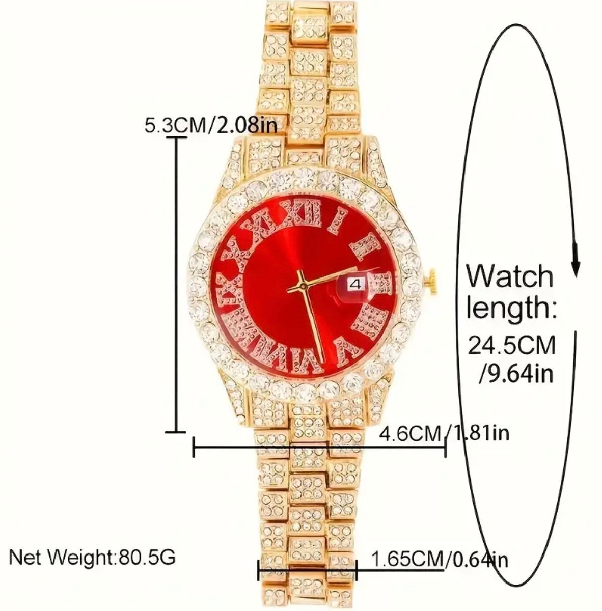 Set Of 4 Pieces, Men's Watch Set, Men's Cuban Necklace Bracelet Set, Men's And Women's Holiday Gifts, Christmas Gifts